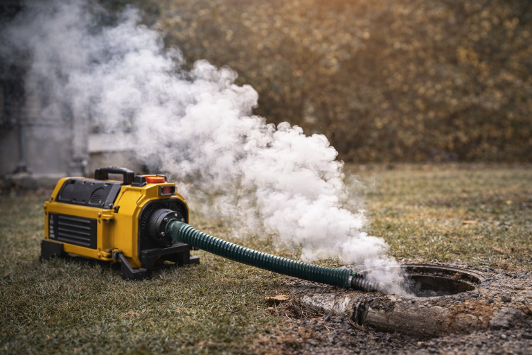 Il est réalisé en injectant de la fumée non corrosive et non toxique et inodore dans le réseau d’égout en utilisant un système de soufflage. Les défauts d’égouts potentiels tels que, fissure – disjonction – bris – effondrement ou toutes autres failles dans votre réseau sont identifiés lorsque la fumée s’échappe du système et apparaît à la surface.